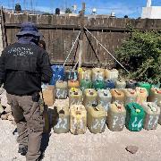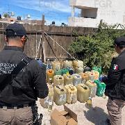 las autoridades aseguraron seis contenedores tipo bidón con capacidad de 50